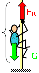 Reibung | Versuch Kletterstangen Ein Mensch klettert an 1 Metallkletterstange und 2 Holzkletterstangen hoch. An einer Holzkletterstange verwendet er Handschuhe. | Aufbau | Handschuhe und 3 Kletterstangen davon bestehen 2 aus Holz und 1 aus Metall. | | Beobachtung |  | | Ergebnis | Reibung verhindert das Abrutschen. Reibung ist abhängig von der Art der berührenden Stoffe (vom Stoffpaar!). Reibung ist eine Kraft, die Reibungskraft FR. Sie ist die Gegenkraft zur Gewichtskraft, die uns abwärts zieht. |  Kräftegleichgewicht = KGG |  Haltekraft KGG Gewichtskraft | | | | Versuch Haftreibung, Gleitreibung, Rollreibung Es werden 3 Reibmethoden untersucht. Was ist von was Abhängig und wo es zum Beispiel angewendet wird. | Beobachtung | | Haftreibung Gleitreibung Rollreibung |  | | | Ergebnis | Es gibt Haftreibung FHR, Gleitreibung FGR und Rollreibung FRR: FHR > FGR > FRR  Die Reibungskraft ist abhängig von der Anpreßkraft an den Untergrund, verursacht durch die Gewichtskraft.  Anwendung der Rollreibung: Kugellager/Rollenlager + Ölschmierung | | | Aufgabe / Lösung  | Woher kommt die Reibung? | |  | Beispiel Zwei Bürsten zeigen durch die Biegung der Borsten die Richtung der bewegungshemmenden Reibungskraft. ► Alle festen Körper haben eine mehr oder weniger raue Oberfläche | | | Anwendung der Reibung: Nagel in Wand, Schraube im Bett, Scheibenbremse, Sand streuen auf Eis |  |  | | Wasserwiderstand | Luftwiderstand | |